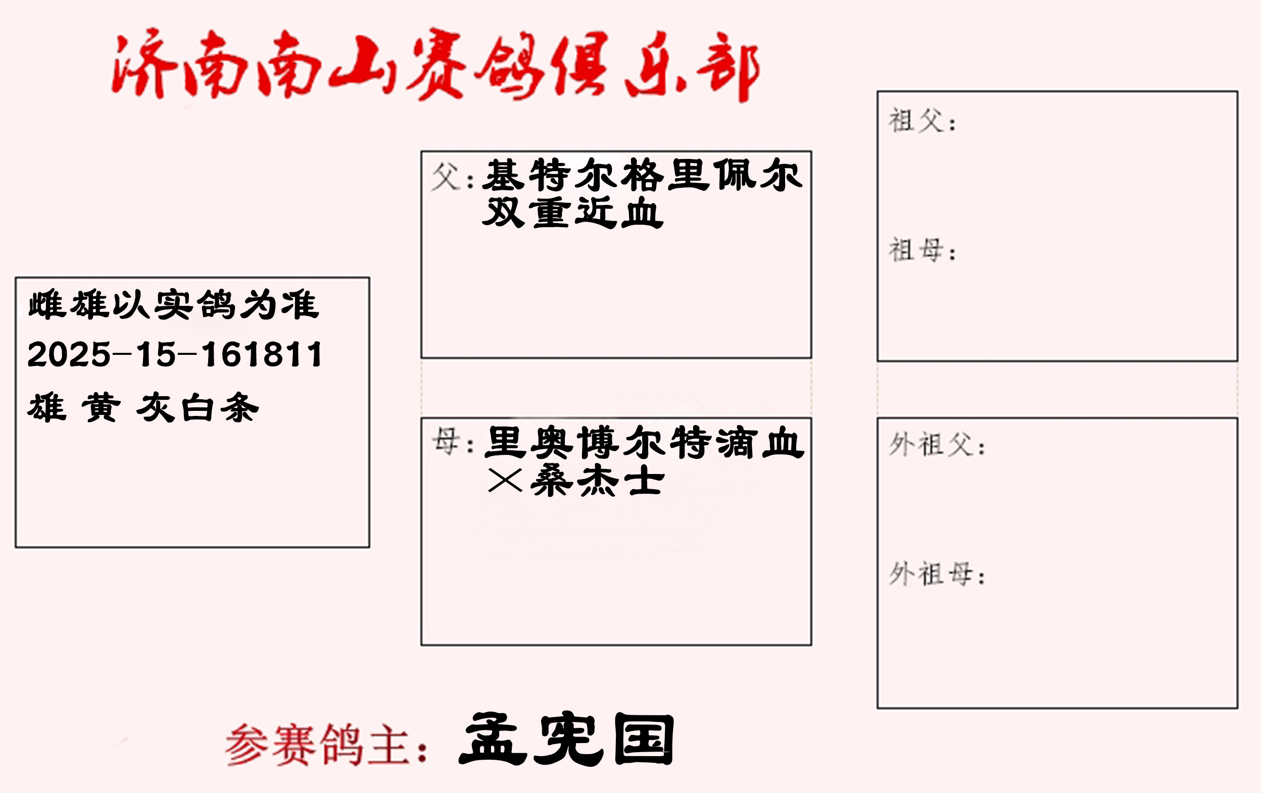 濟南南山25秋特比環(huán)三關綜合鴿王29名