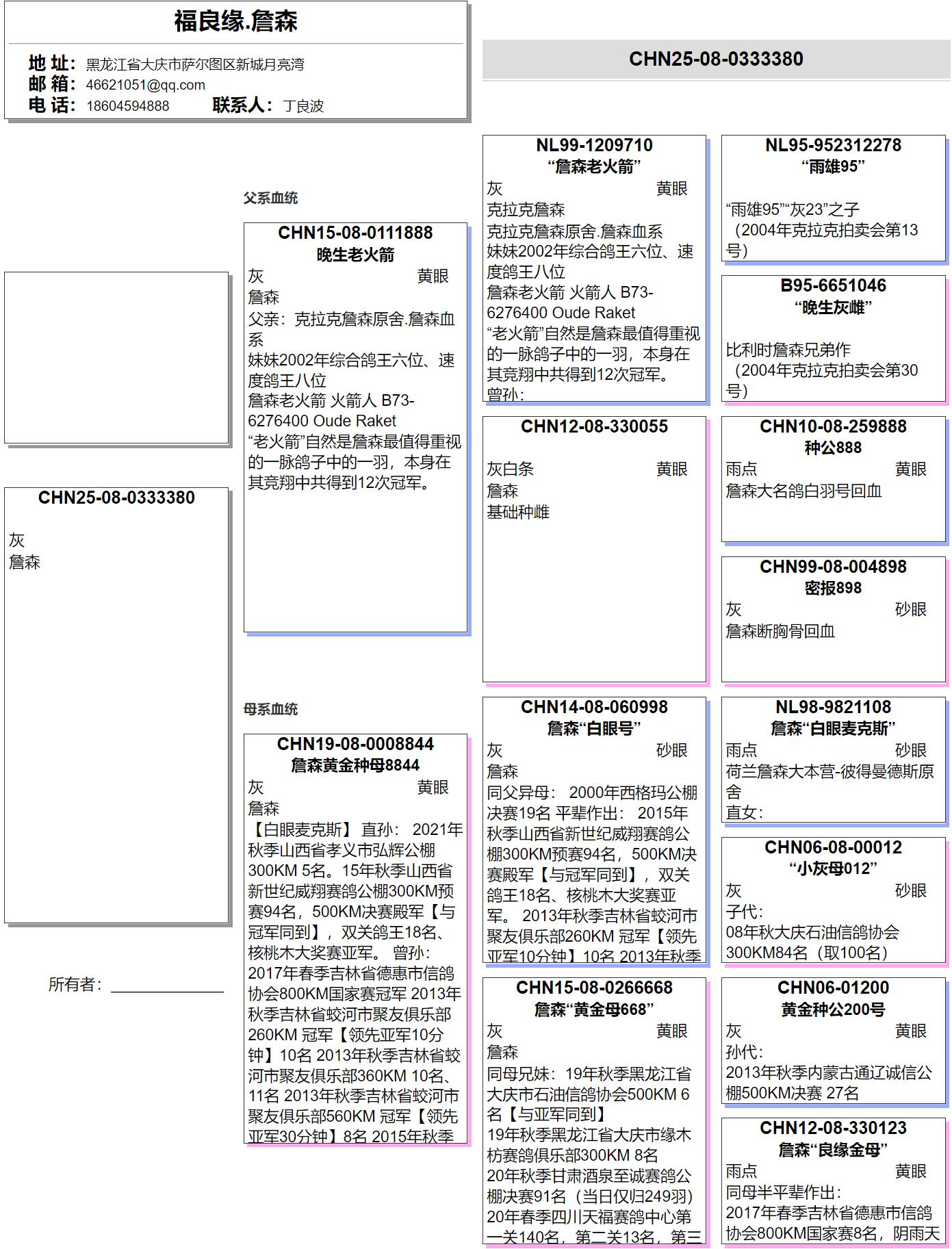 曾祖母:B95-6651046 晚生灰雌 詹森兄弟原舍種鴿