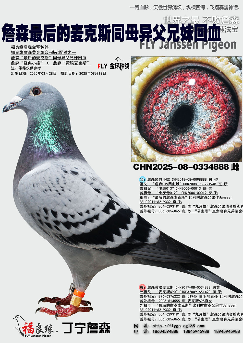 曾外祖父:B04-6293191 斑 砂“九月雄”詹森兄弟清舍拍賣種鴿之一
