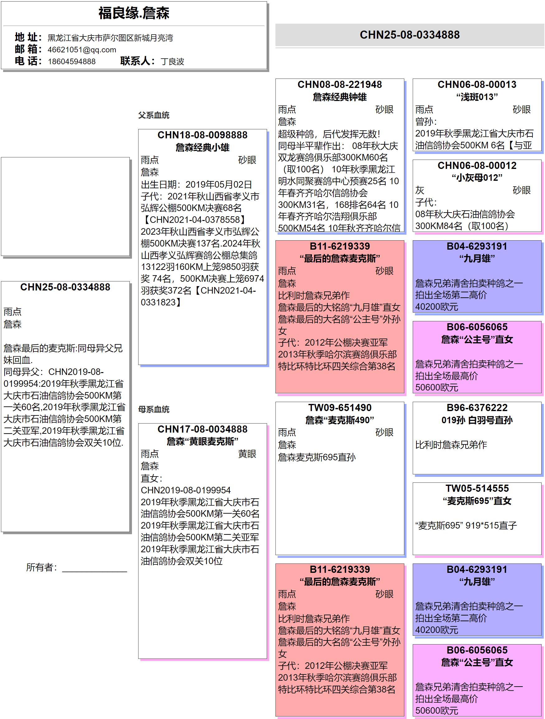 曾外祖母:B06-6056065 斑 砂 “公主號(hào)”直女詹森兄弟清舍拍賣種鴿之一