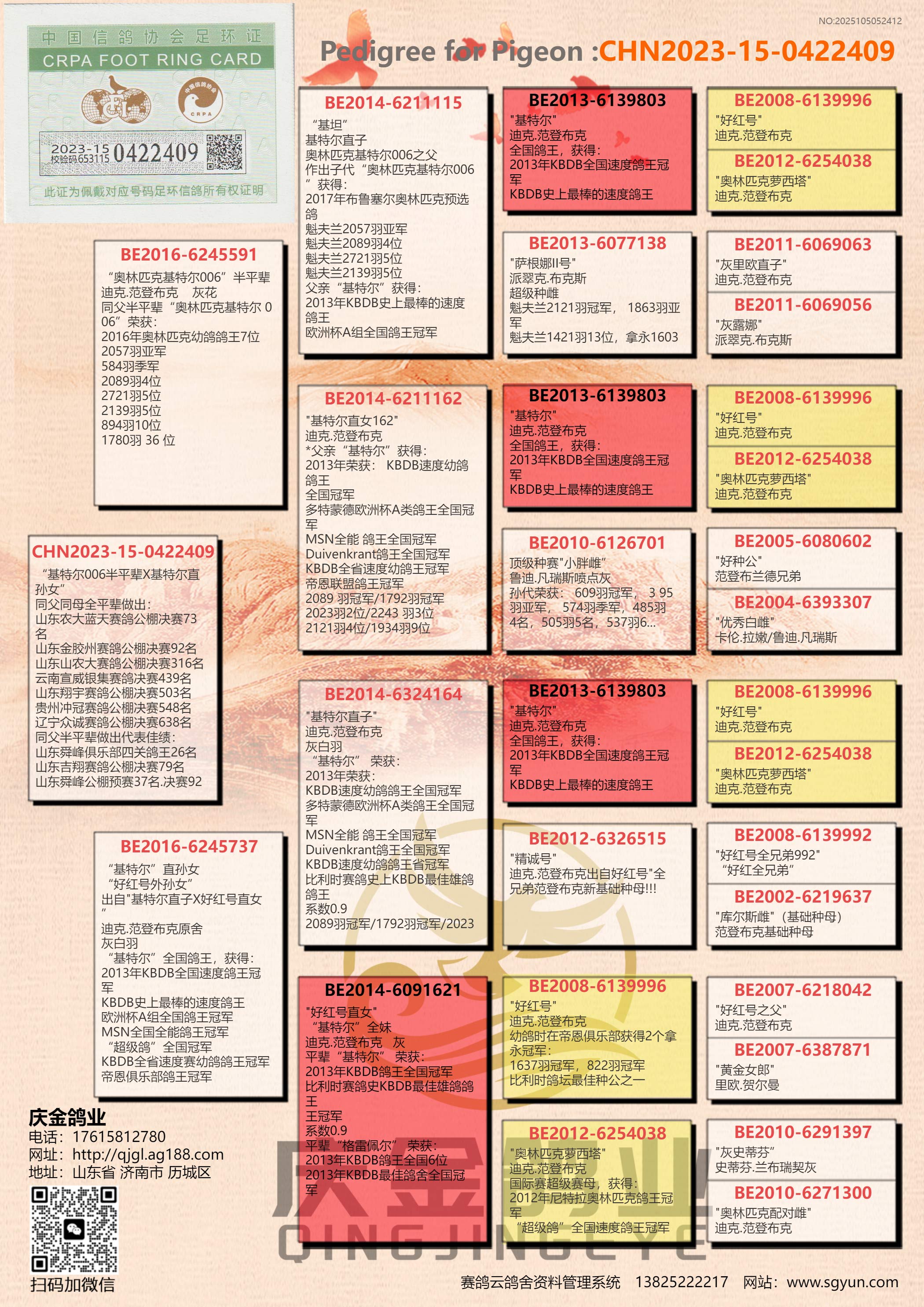 1625694 利奧.赫爾曼斯“鴿王楊”直子x“鴿王楊”直孫女 ¥1000元 0次