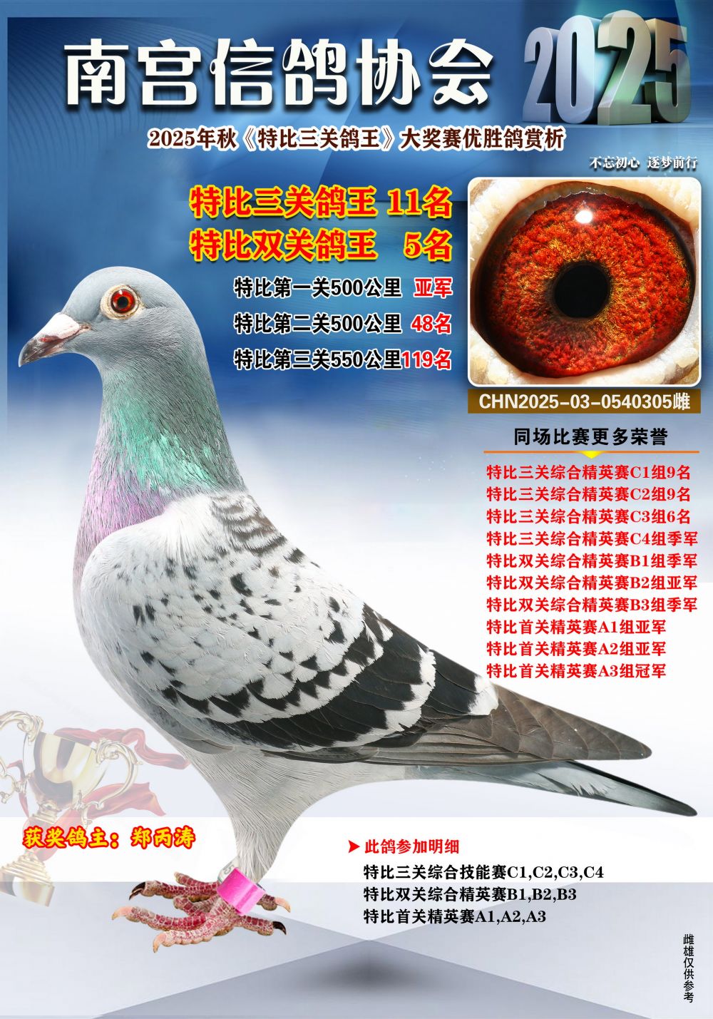 | 1625699 | 南宮鴿會三關(guān)鴿王冠軍 | ¥1000元 | 1次 |