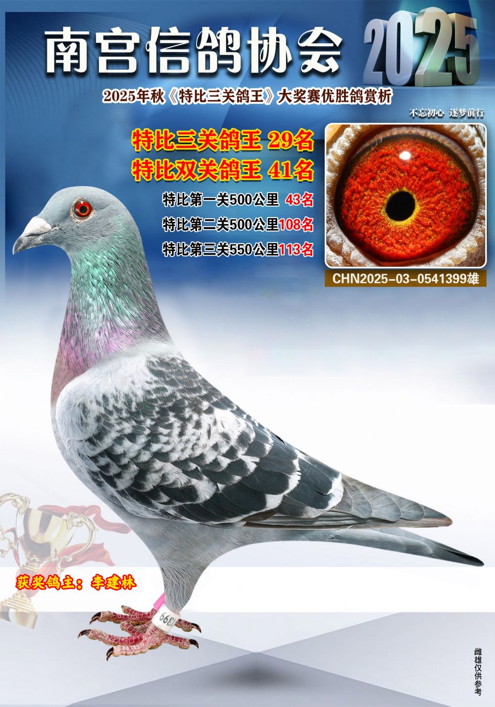 | 1625699 | 南宮鴿會三關鴿王冠軍 | ¥1000元 | 1次 |