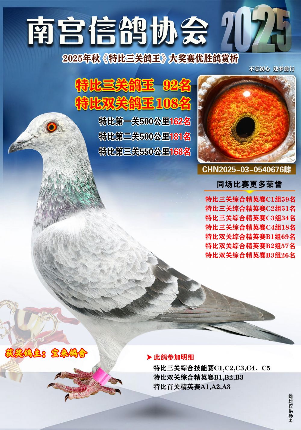 | 1625699 | 南宮鴿會三關(guān)鴿王冠軍 | ¥1000元 | 1次 |