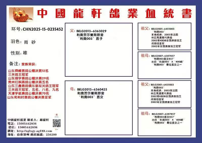| 1625849 | 中長(zhǎng)距離速度鴿系!利奧賀爾曼斯003高輩分近親回血 | ¥1000元 | 0次 |