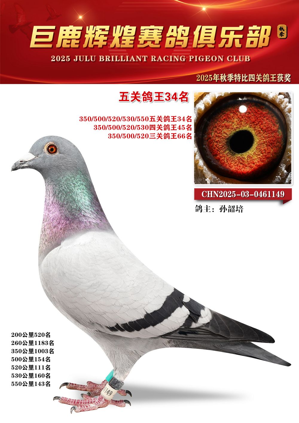 | 1625858 | 巨鹿輝煌五關鴿王季軍 | ¥200元 | 0次 |