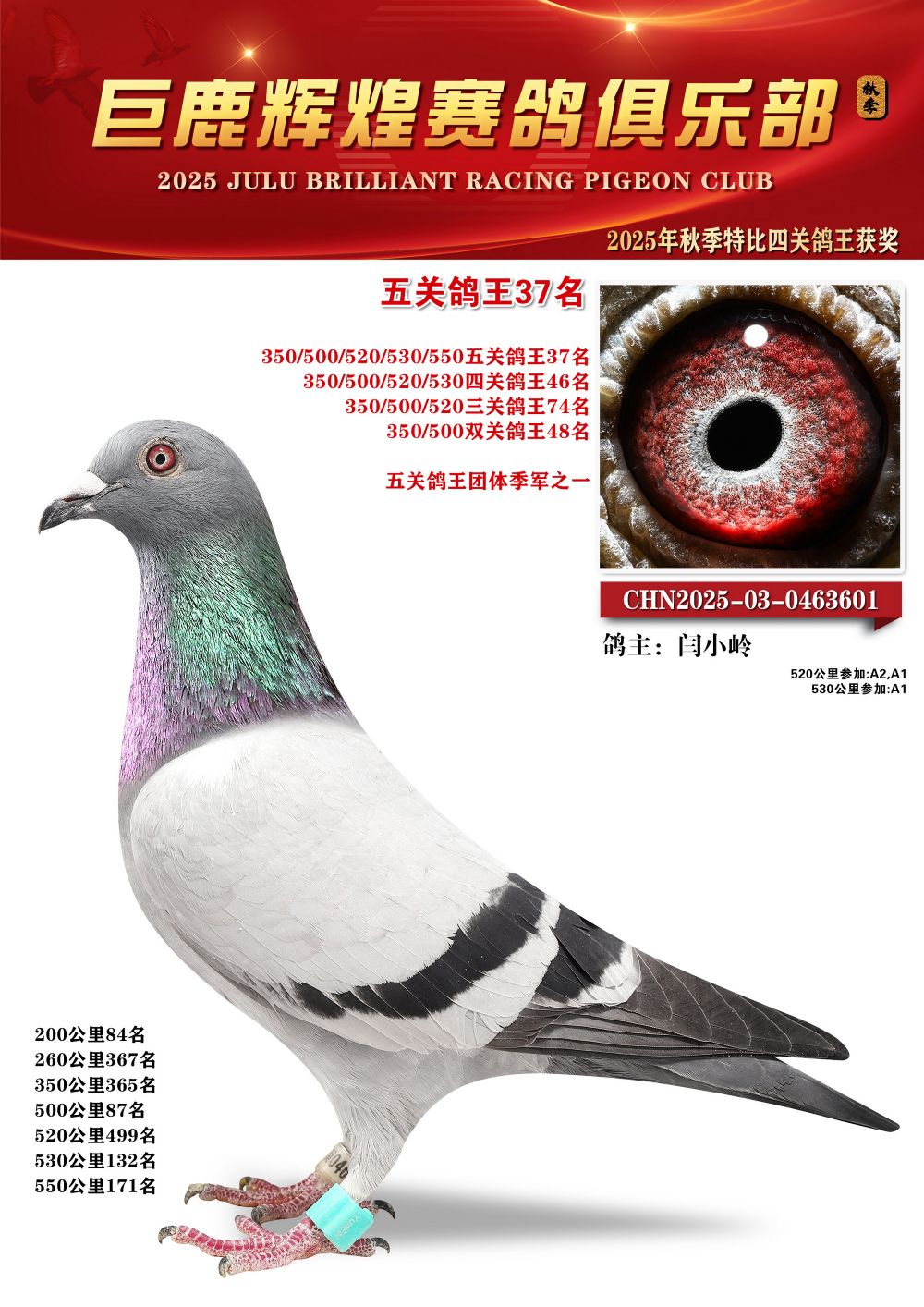 | 1625856 | 巨鹿輝煌五關(guān)鴿王冠軍 | ¥300元 | 2次 |