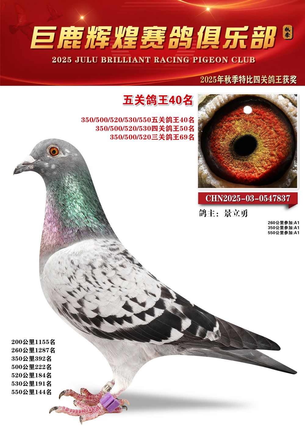 | 1625862 | 巨鹿輝煌五關(guān)鴿王10名 | ¥200元 | 0次 |