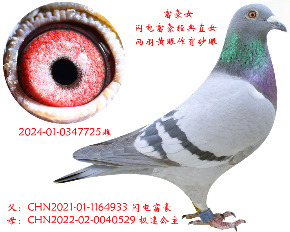 父母均為黃眼種鴿,作育砂眼種鴿,超級(jí)遺傳,父母均在本舍,支持DNA鑒定。