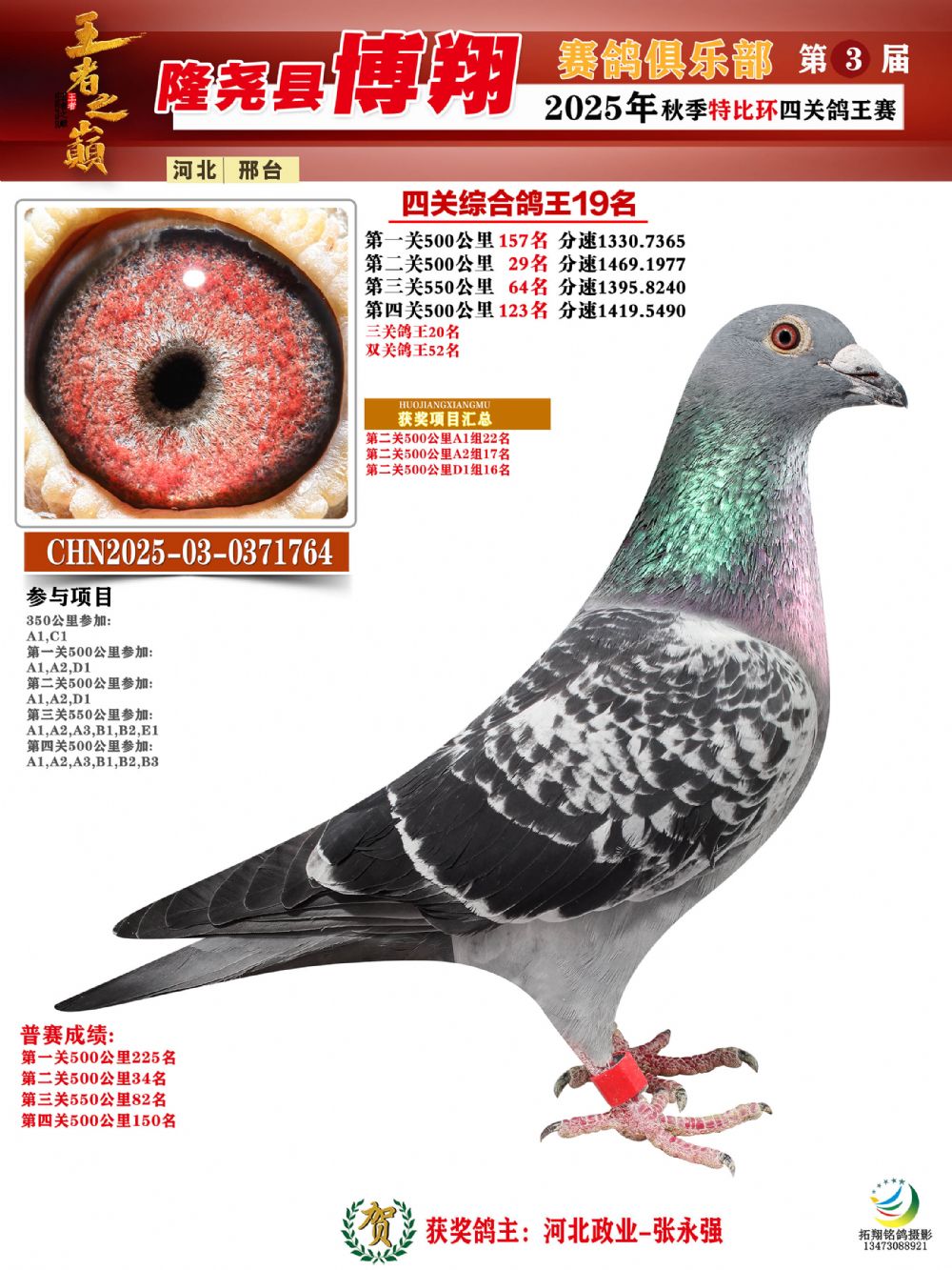 | 1626220 | 博翔特比四關(guān)鴿王亞軍 | ¥1600元 | 3次 |