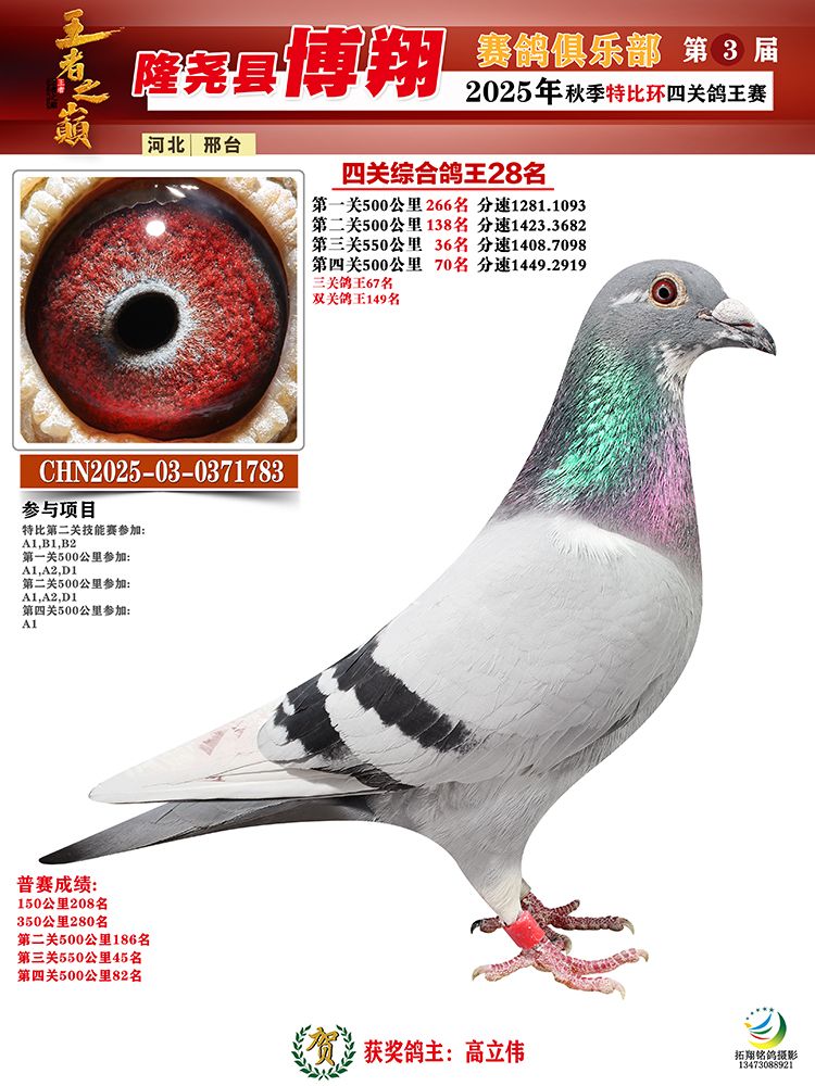 | 1626219 | 博翔特比四關(guān)鴿王冠軍 | ¥1600元 | 4次 |