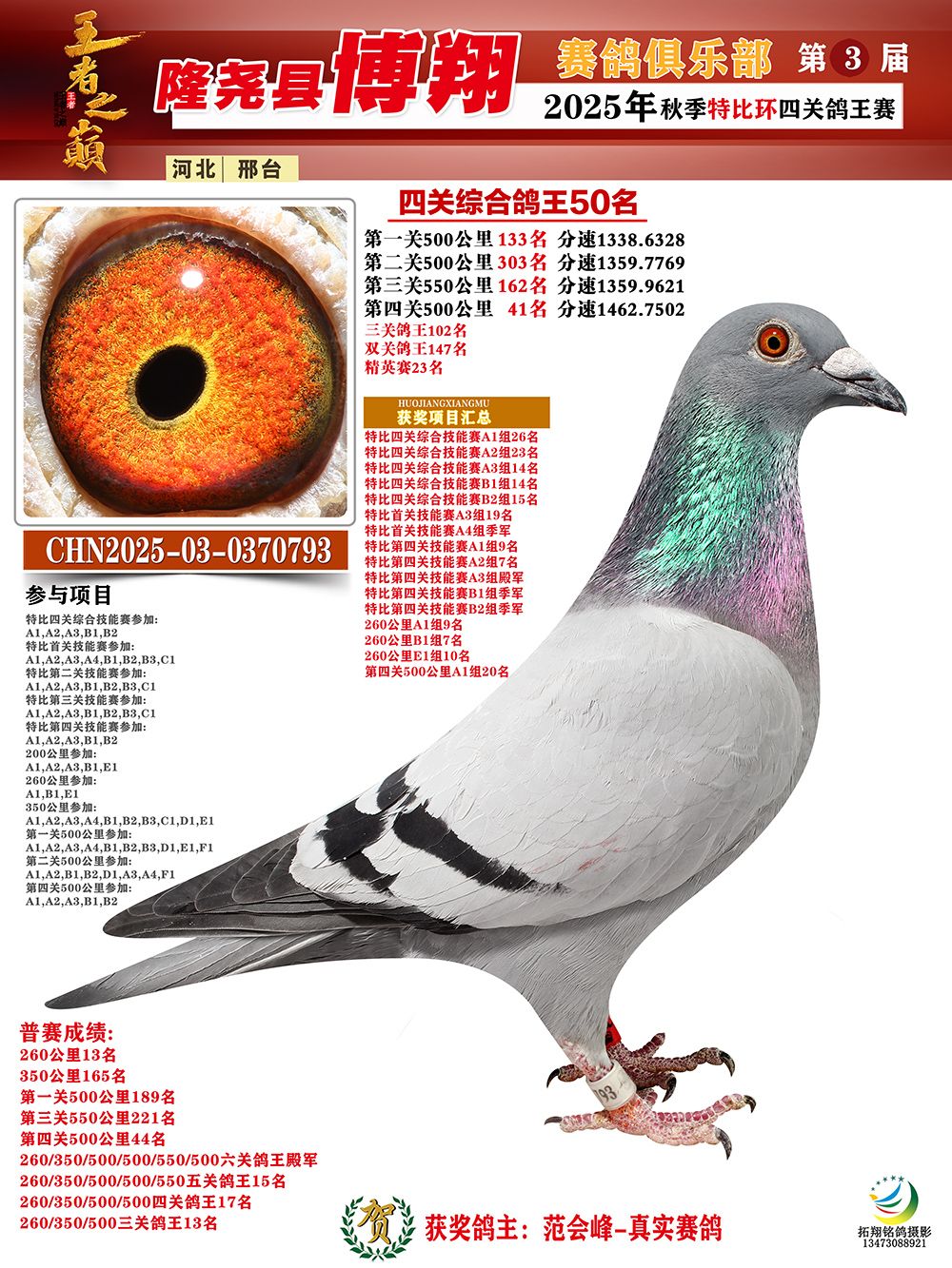 | 1626220 | 博翔特比四關(guān)鴿王亞軍 | ¥1600元 | 3次 |