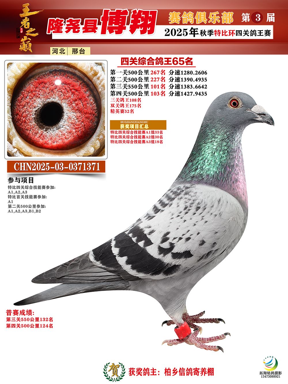 | 1626219 | 博翔特比四關(guān)鴿王冠軍 | ¥1600元 | 4次 |