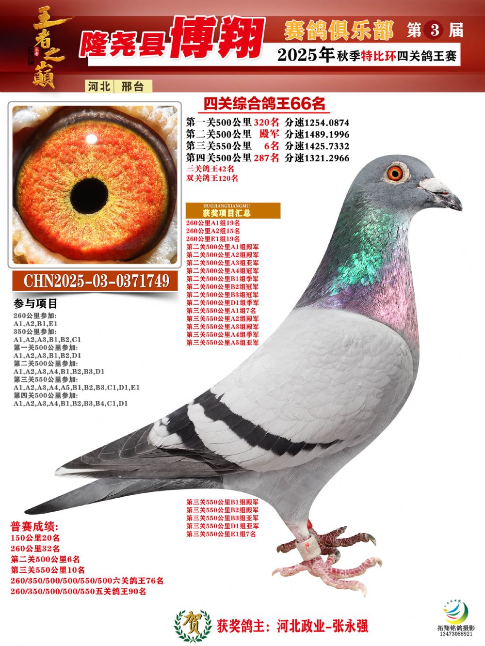 | 1626220 | 博翔特比四關(guān)鴿王亞軍 | ¥1600元 | 3次 |