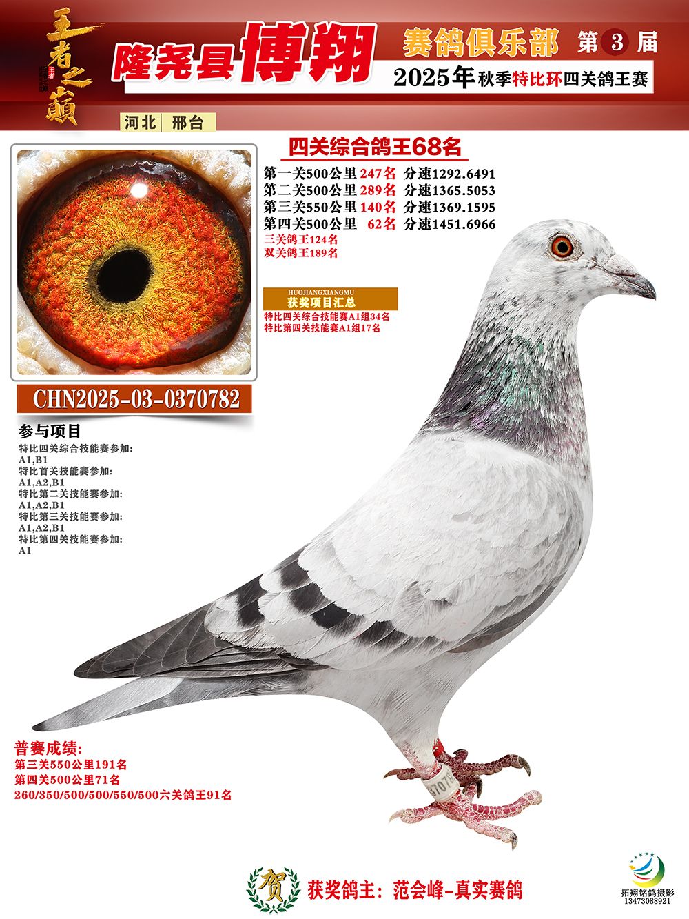 | 1626219 | 博翔特比四關(guān)鴿王冠軍 | ¥1600元 | 4次 |