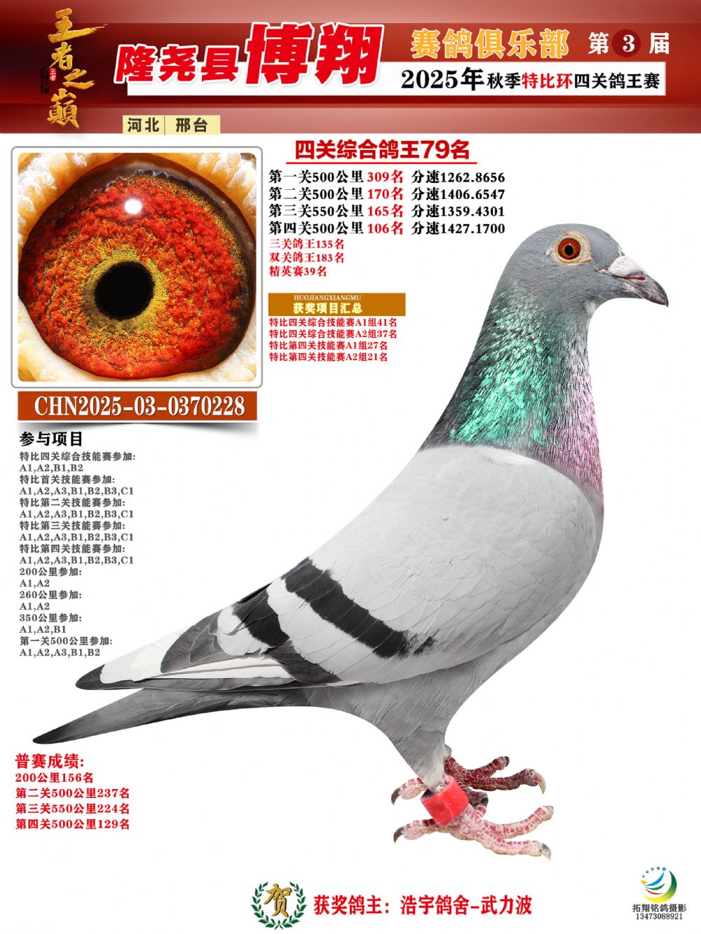 | 1626220 | 博翔特比四關(guān)鴿王亞軍 | ¥1600元 | 3次 |