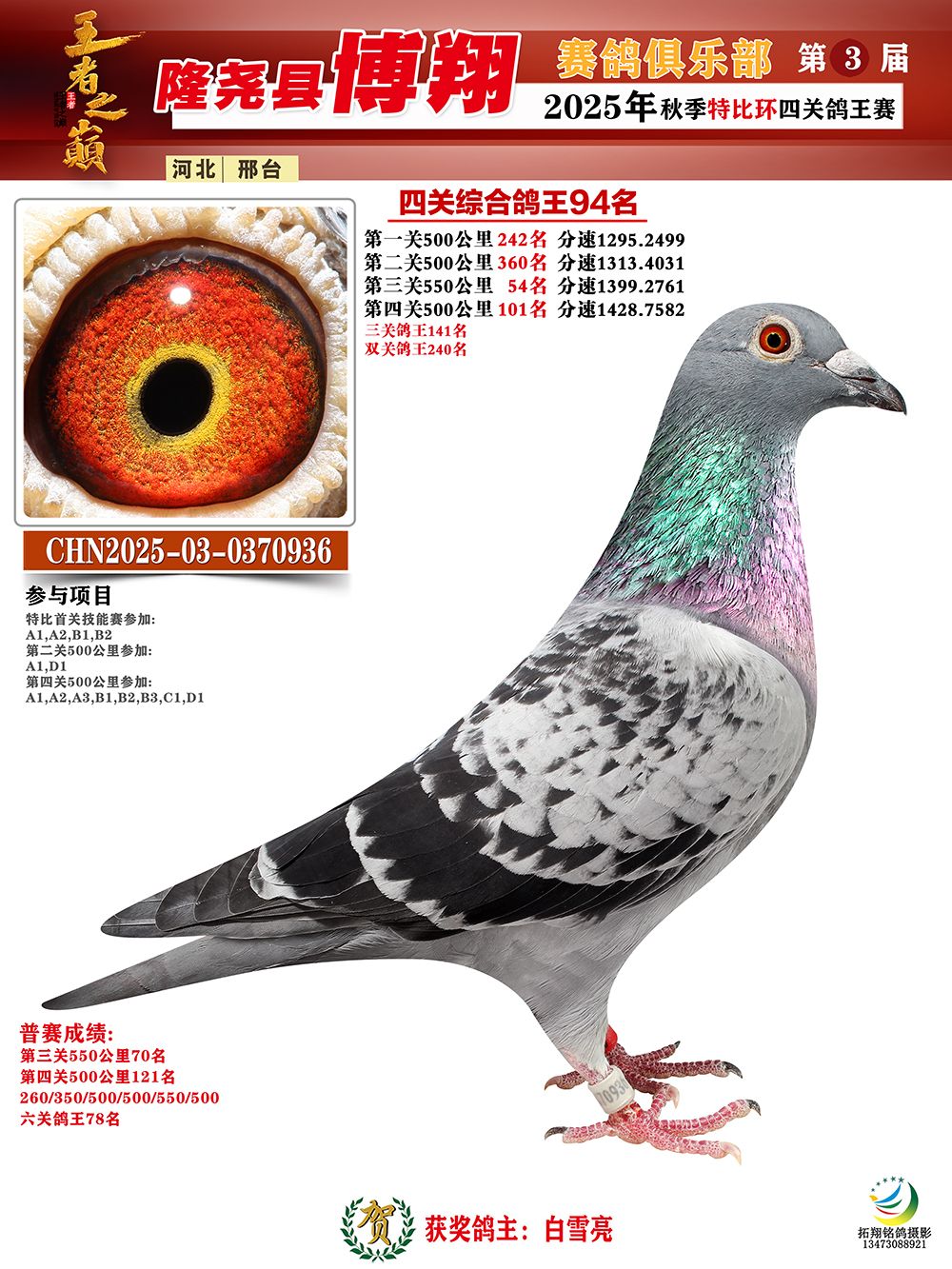 | 1626220 | 博翔特比四關(guān)鴿王亞軍 | ¥1600元 | 3次 |