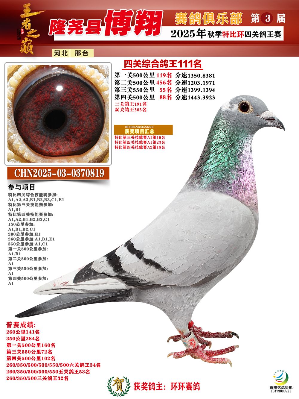 | 1626340 | 博翔特比四關(guān)鴿王125名 | ¥200元 | 1次 |