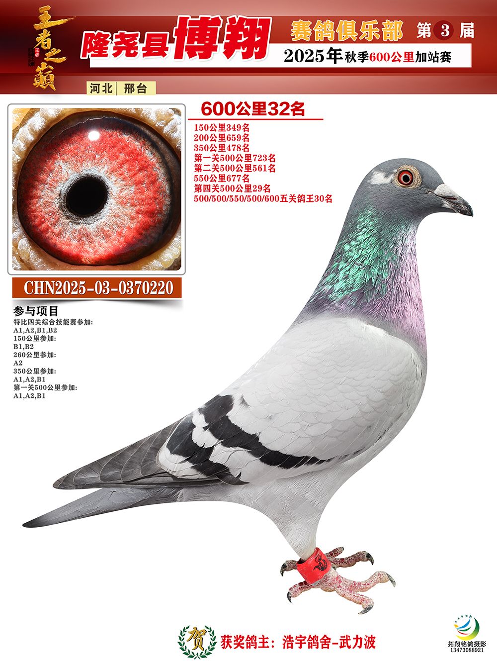| 1626380 | 博翔600公里亞軍 | ¥600元 | 3次 |