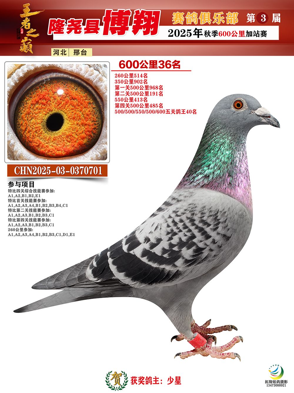 | 1626380 | 博翔600公里亞軍 | ¥600元 | 3次 |