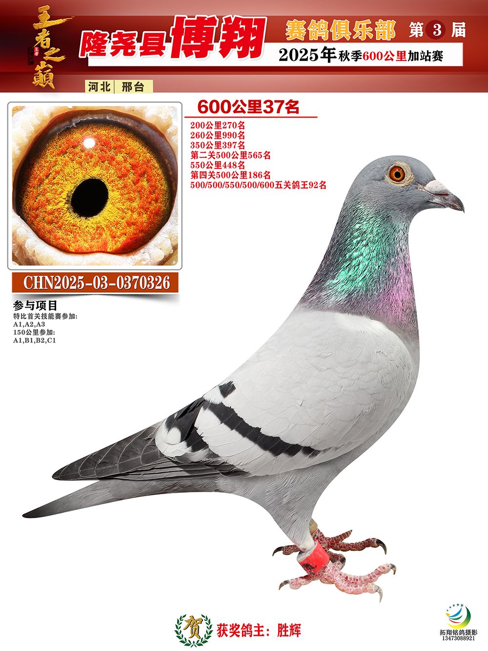 | 1626380 | 博翔600公里亞軍 | ¥600元 | 3次 |