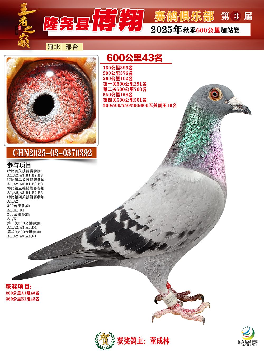 | 1626380 | 博翔600公里亞軍 | ¥600元 | 3次 |