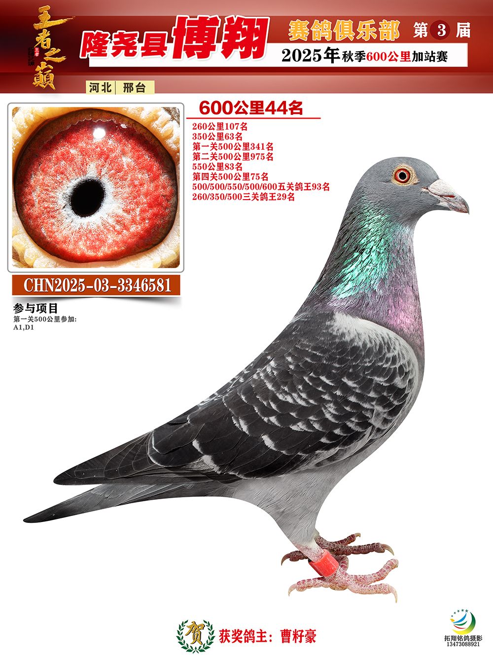 | 1626380 | 博翔600公里亞軍 | ¥600元 | 3次 |
