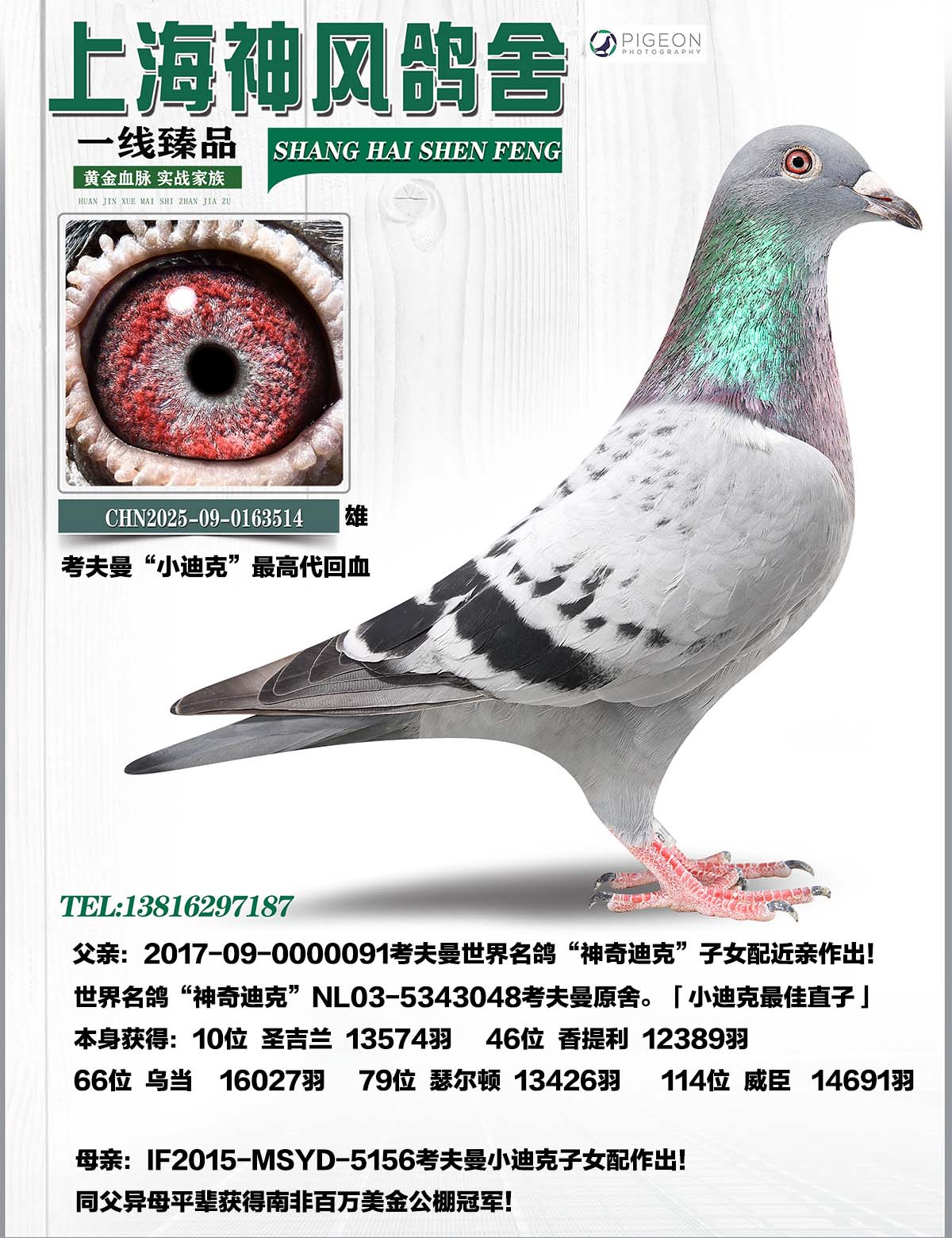 祖父:NL08-2102658考夫曼世界名鴿“神奇迪克”直子!靶〉峡恕敝睂O