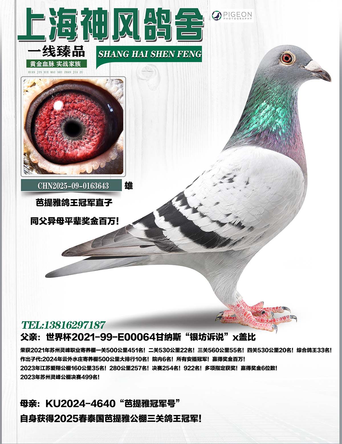 | 1626549 | 南非33孫/公棚鴿王冠軍x威廉迪布恩19名 | ¥1000元 | 1次 |
