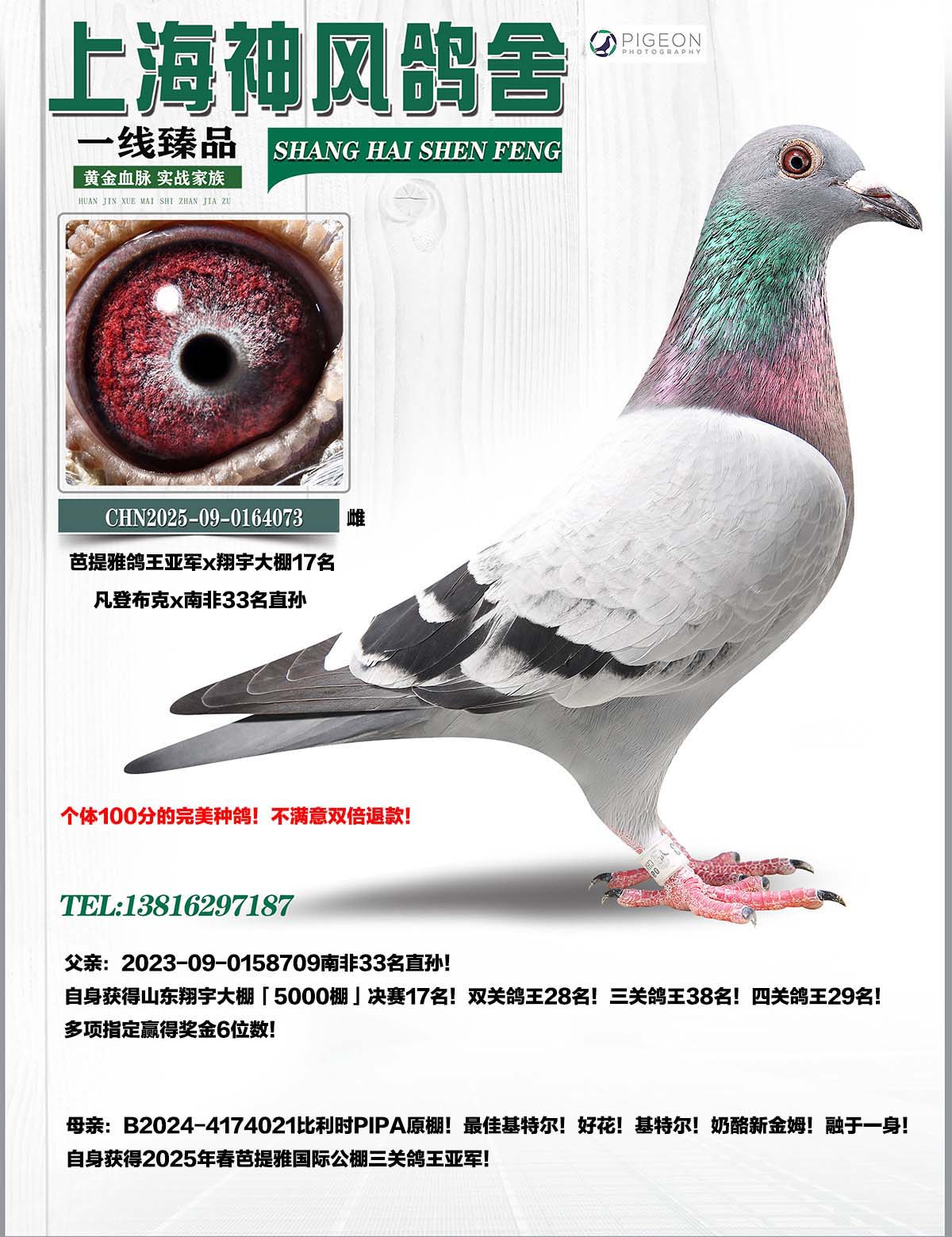 | 1626549 | 南非33孫/公棚鴿王冠軍x威廉迪布恩19名 | ¥1000元 | 1次 |