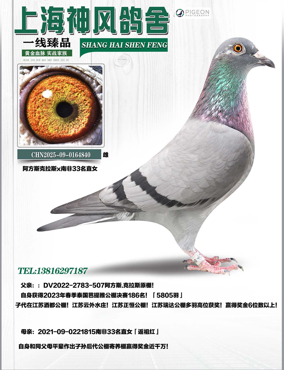 子代:“麥西”獲得2019年南非百萬美金公棚決賽55名!鴿王5名!
