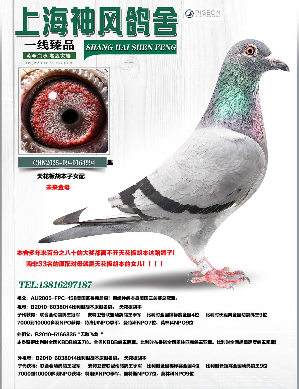 祖父:AU2005-FPC-158美國瓦魯克詹森!頂級種鴿本身美國三關(guān)賽總冠軍。