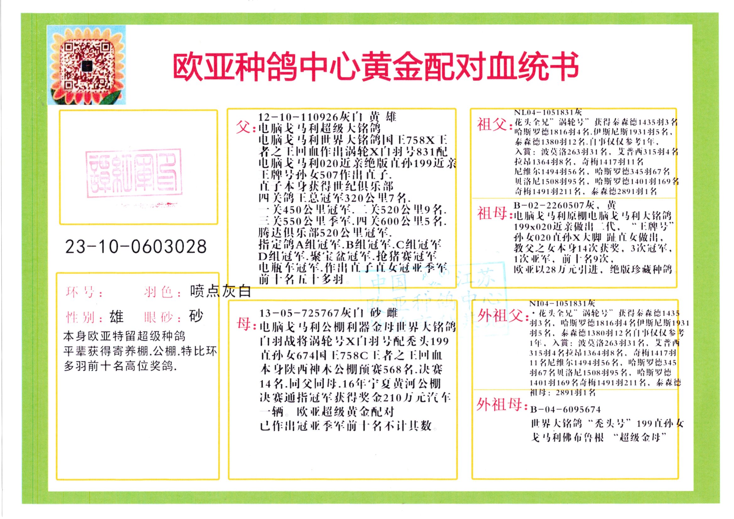 24年秋南京特比環(huán)歐亞榮獲大團(tuán)體冠軍.小團(tuán)體冠軍551公里大特比13名.14名.16名.19名.20名.21名.24名.26名.27名.28名.42名.52名.54名.57名.65名.66名.68名.70名.71名.72名.74名.76名.80名.82名.83名.84名.85名.86名.90名.92名.110名.116名.121名.122名.128名.131名.158名.161名.164名.165名.166名.172名.174名.177名.182名.195名.196名.201名.205名.208名.210名.216名.253名.269名.275名.276名.294名.296名.299名,,24年秋云南天南銅都公棚決賽415名.天南銅都小棚決賽409名.云南玉活公棚決賽102名.490名.團(tuán)體32名上籠二羽進(jìn)二羽,天南銅都大棚506公里決賽445名。熱烈祝賀河北省巨鹿縣李蘭生老師用歐亞泰山號(hào)血系連續(xù)十一年奪冠軍,河北省國(guó)家賽冠軍.全國(guó)季軍等多次前十名高位,揚(yáng)州王軍王總用歐亞利奧24年春季獲山東翔宇公棚決賽33名蓋比53名。南京劉正龍劉總用歐亞蓋比獲得24年秋山東濰坊國(guó)際公棚決賽42名.精英賽30名.三關(guān)鴿王71名.決賽86名.加站賽16名.南京市特比環(huán)A組鴿王9名.B組鴿王5名.6名.C組鴿王5名.精英賽冠軍4名.技能賽A組冠軍4名.5名.秦淮區(qū)特比環(huán)榮獲15名.46名.48名.87名。四川西昌徐亮徐總用歐亞利奧獲得涼山州聚友決賽177名.第二關(guān)亞軍雙關(guān)鴿王19名.三關(guān)鴿王105名.云南豪庭公棚決賽603名。熱烈祝賀24年四川重慶翔園鴿舍用歐亞泰山號(hào)榮獲春季400公里冠軍.秋季500公里冠軍,河北王總用詹森X利奧獲得千羽千翔公棚400公里冠軍,廣東蔡楷煥榮獲24年秋愛好者 賽鴿俱樂部三關(guān)鴿王季軍.一關(guān)420公里99名.二關(guān)450公里11名.三關(guān)520公里32名.單關(guān)季軍.7名.12名,江西李衛(wèi)興榮獲貴州紅楓公棚8名.共翔俱樂部寄養(yǎng)棚四關(guān)綜合鴿王30名.一關(guān)400公里78名.二關(guān)500公里55名.三關(guān)520公里37名.四關(guān)500公里57名.同父母獲公棚18名.雷鳴獲得武漢黃浦育翔中心冠軍,四川陳文獲得四川明鴻俱樂部300公里夢(mèng)幻2名.3名.4名.9名.10名.13名.14名.15名.31名.34名.40名.41名.42名.43名.69名.71名.72名.73名.74名.94名.95名.97名.98名.99名.419公里決賽榮獲總冠軍7名.總共歸巢9羽,四川徐亮獲豪庭決賽603名,山西鄭勇獲得山西泰鑫公棚決賽255名詹森紅狐,熱烈祝賀馬總獲得開爾(飛躍隊(duì))決賽9名獲獎(jiǎng)金1310000萬元.第一關(guān)52名,天津津福資賽180公里96名.獲獎(jiǎng)金429543萬元,歐亞支持全國(guó)鴿友24年秋多人報(bào)喜 祝大家取得更好成績(jī),給歐亞報(bào)喜鴿友歐亞決定給每人贈(zèng)送一羽超級(jí)種鴿。歐亞俱樂部特比環(huán)多關(guān)鴿王成績(jī):15年秋淮安特比環(huán)黑色星期一全會(huì)上籠9700多羽,當(dāng)天無鴿歸巢,第二天全會(huì)歸巢357羽,本舍歸巢158羽.前十名八羽.前一百名歸巢57羽,16年春季獲五關(guān)鴿王總冠軍,總亞軍四名.六名.七名.九名.十名.晶藝俱樂部520公里冠亞季軍5名.6名.7名.9名.11名等,火車頭冠軍.季軍6名.8名.9名.10名,16年秋晶藝俱樂部特比環(huán)520公里亞軍.季軍4名.6名.7名.9名,15年春南京白下特比環(huán)冠軍.亞軍.季軍6名.7名.8名.9名.10名.指定鴿A B組獲得冠軍.亞軍.季軍4名.5名.,17年淮安特比環(huán)亞軍.4名.5名.7名.8名.10名.六關(guān)鴿王總冠軍.4名.6名.9名.10名,寄養(yǎng)棚宿遷劉總20羽特比環(huán)獲冠軍.季軍.4名.7名.8名.9名等。18年榮獲萬羽特比環(huán)六關(guān)鴿王總冠軍.總亞軍.總季軍.6名.8名.十名.單關(guān)四羽冠軍.二羽亞軍.四羽季軍.前十名27羽。19年秋萬羽特比環(huán)六關(guān)鴿王總亞軍.總季軍.5名.8名等,單關(guān)二羽冠軍.三羽亞軍.一羽季軍前十名31羽。20年秋淮安市鴿會(huì)四關(guān)特比環(huán)大賽風(fēng)雨無阻鴿王亞軍.鴿王六名,金品俱樂部萬羽特比環(huán)六關(guān)鴿王總冠軍,總亞軍.四名.五名.六名.七名.八名.十名.前二百名鴿王35羽,單關(guān)冠亞季軍前十名四十多羽,火車頭五關(guān)鴿王季軍.六名.八名.前二百名鴿王十七羽。20年春榮獲淮安五區(qū)一市四關(guān)鴿王總冠軍.亞軍.四名.八名.九名。21年秋榮獲金品萬羽特比環(huán)大賽六關(guān)鴿王總亞軍.總季軍.四名.七名.九名.十名.單關(guān)冠亞軍季軍前十名三十多羽;疖囶^協(xié)會(huì)鴿王六名.七名.十名.單關(guān)前十名十七羽。22年秋榮獲鴿王總冠軍.總亞軍.5名.7名.8名.9名.11名.單關(guān)冠亞季軍前十名三十多羽,第一關(guān)單關(guān)前二百名四十多羽,第二關(guān)前二百名三十多羽,第三關(guān)前二百名四十多羽,第四關(guān)前二百名四十多羽,第五關(guān)前一百名53羽。23年秋榮獲鴿王季軍.五名.八名.十名.13名.17名.20名.27名等多羽鴿王.單關(guān)前十名二十多羽。公棚.寄養(yǎng)棚部分成績(jī):16年秋寧夏黃河公棚總冠軍電腦戈馬力指定通炮冠軍,17年送八羽參賽獲得鴿王八名進(jìn)獎(jiǎng)四名,支持韓總榮獲八名。支持鴿友榮獲寧夏中衛(wèi)公棚決賽總冠軍.精英賽冠軍,支持18年寧夏黃河公棚決賽冠軍詹森X泰山。安徽鼎博寄養(yǎng)棚院內(nèi)外四關(guān)鴿王總冠軍.鴿王十七名.三十七名同窩,鴿王39名.42名.58名.67名。18年山東公棚預(yù)賽冠軍.決賽65名.送八羽進(jìn)獎(jiǎng)五羽.指定獲奔馳汽車一輛。支持鴿友獲得云南藍(lán)云公棚冠軍.蓋比X佛卡門。支持鴿友榮獲云南銀集公棚決賽冠軍 詹森427X520血系 速度賽6700羽冠軍。17年榮獲金馬俱樂部寄養(y