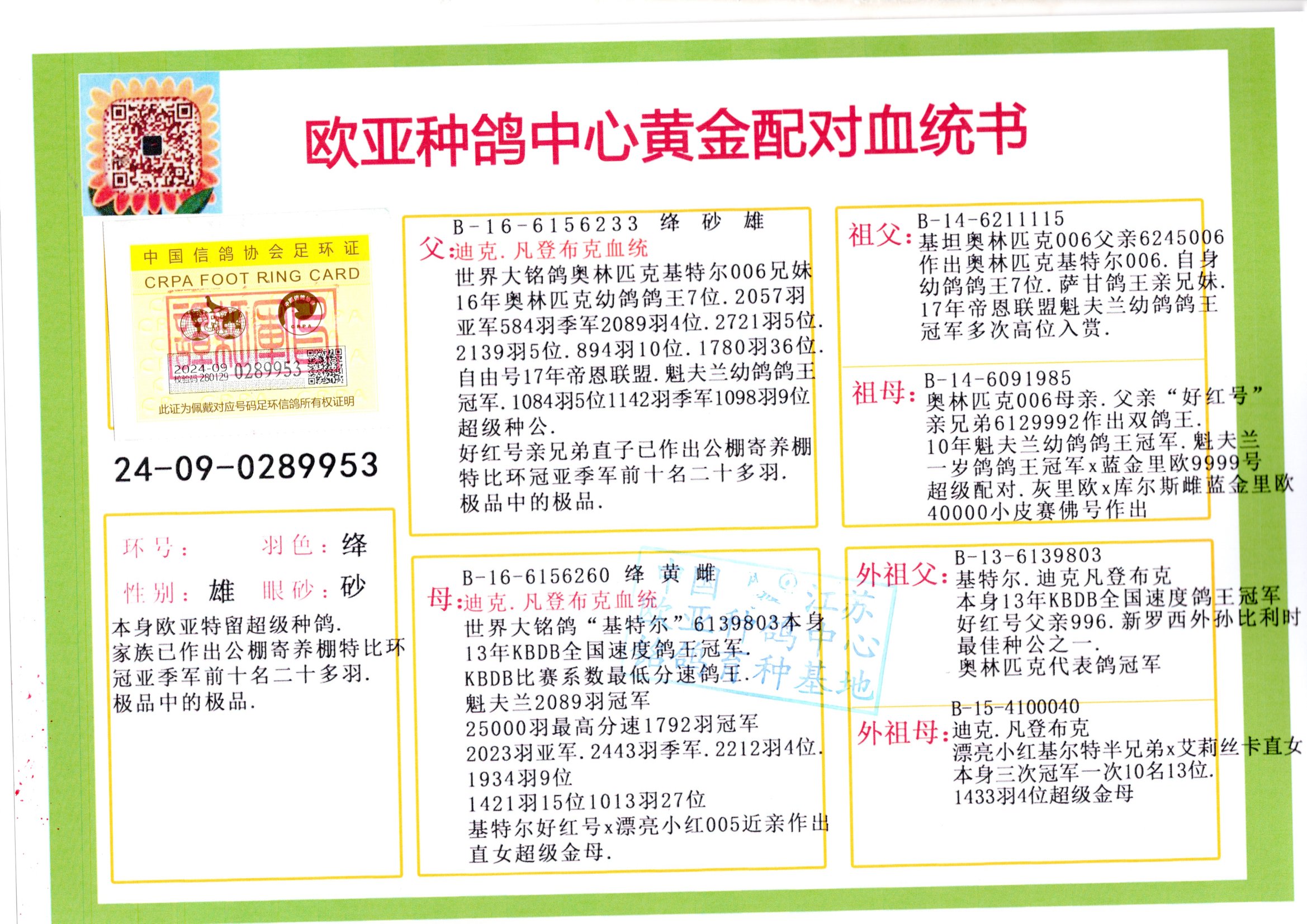 24年秋南京特比環(huán)歐亞榮獲大團(tuán)體冠軍.小團(tuán)體冠軍551公里大特比13名.14名.16名.19名.20名.21名.24名.26名.27名.28名.42名.52名.54名.57名.65名.66名.68名.70名.71名.72名.74名.76名.80名.82名.83名.84名.85名.86名.90名.92名.110名.116名.121名.122名.128名.131名.158名.161名.164名.165名.166名.172名.174名.177名.182名.195名.196名.201名.205名.208名.210名.216名.253名.269名.275名.276名.294名.296名.299名,,24年秋云南天南銅都公棚決賽415名.天南銅都小棚決賽409名.云南玉活公棚決賽102名.490名.團(tuán)體32名上籠二羽進(jìn)二羽,天南銅都大棚506公里決賽445名。熱烈祝賀河北省巨鹿縣李蘭生老師用歐亞泰山號(hào)血系連續(xù)十一年奪冠軍,河北省國(guó)家賽冠軍.全國(guó)季軍等多次前十名高位,揚(yáng)州王軍王總用歐亞利奧24年春季獲山東翔宇公棚決賽33名蓋比53名。南京劉正龍劉總用歐亞蓋比獲得24年秋山東濰坊國(guó)際公棚決賽42名.精英賽30名.三關(guān)鴿王71名.決賽86名.加站賽16名.南京市特比環(huán)A組鴿王9名.B組鴿王5名.6名.C組鴿王5名.精英賽冠軍4名.技能賽A組冠軍4名.5名.秦淮區(qū)特比環(huán)榮獲15名.46名.48名.87名。四川西昌徐亮徐總用歐亞利奧獲得涼山州聚友決賽177名.第二關(guān)亞軍雙關(guān)鴿王19名.三關(guān)鴿王105名.云南豪庭公棚決賽603名。熱烈祝賀24年四川重慶翔園鴿舍用歐亞泰山號(hào)榮獲春季400公里冠軍.秋季500公里冠軍,河北王總用詹森X利奧獲得千羽千翔公棚400公里冠軍,廣東蔡楷煥榮獲24年秋愛好者 賽鴿俱樂部三關(guān)鴿王季軍.一關(guān)420公里99名.二關(guān)450公里11名.三關(guān)520公里32名.單關(guān)季軍.7名.12名,江西李衛(wèi)興榮獲貴州紅楓公棚8名.共翔俱樂部寄養(yǎng)棚四關(guān)綜合鴿王30名.一關(guān)400公里78名.二關(guān)500公里55名.三關(guān)520公里37名.四關(guān)500公里57名.同父母獲公棚18名.雷鳴獲得武漢黃浦育翔中心冠軍,四川陳文獲得四川明鴻俱樂部300公里夢(mèng)幻2名.3名.4名.9名.10名.13名.14名.15名.31名.34名.40名.41名.42名.43名.69名.71名.72名.73名.74名.94名.95名.97名.98名.99名.419公里決賽榮獲總冠軍7名.總共歸巢9羽,四川徐亮獲豪庭決賽603名,山西鄭勇獲得山西泰鑫公棚決賽255名詹森紅狐,熱烈祝賀馬總獲得開爾(飛躍隊(duì))決賽9名獲獎(jiǎng)金1310000萬(wàn)元.第一關(guān)52名,天津津福資賽180公里96名.獲獎(jiǎng)金429543萬(wàn)元,歐亞支持全國(guó)鴿友24年秋多人報(bào)喜 祝大家取得更好成績(jī),給歐亞報(bào)喜鴿友歐亞決定給每人贈(zèng)送一羽超級(jí)種鴿。歐亞俱樂部特比環(huán)多關(guān)鴿王成績(jī):15年秋淮安特比環(huán)黑色星期一全會(huì)上籠9700多羽,當(dāng)天無(wú)鴿歸巢,第二天全會(huì)歸巢357羽,本舍歸巢158羽.前十名八羽.前一百名歸巢57羽,16年春季獲五關(guān)鴿王總冠軍,總亞軍四名.六名.七名.九名.十名.晶藝俱樂部520公里冠亞季軍5名.6名.7名.9名.11名等,火車頭冠軍.季軍6名.8名.9名.10名,16年秋晶藝俱樂部特比環(huán)520公里亞軍.季軍4名.6名.7名.9名,15年春南京白下特比環(huán)冠軍.亞軍.季軍6名.7名.8名.9名.10名.指定鴿A B組獲得冠軍.亞軍.季軍4名.5名.,17年淮安特比環(huán)亞軍.4名.5名.7名.8名.10名.六關(guān)鴿王總冠軍.4名.6名.9名.10名,寄養(yǎng)棚宿遷劉總20羽特比環(huán)獲冠軍.季軍.4名.7名.8名.9名等。18年榮獲萬(wàn)羽特比環(huán)六關(guān)鴿王總冠軍.總亞軍.總季軍.6名.8名.十名.單關(guān)四羽冠軍.二羽亞軍.四羽季軍.前十名27羽。19年秋萬(wàn)羽特比環(huán)六關(guān)鴿王總亞軍.總季軍.5名.8名等,單關(guān)二羽冠軍.三羽亞軍.一羽季軍前十名31羽。20年秋淮安市鴿會(huì)四關(guān)特比環(huán)大賽風(fēng)雨無(wú)阻鴿王亞軍.鴿王六名,金品俱樂部萬(wàn)羽特比環(huán)六關(guān)鴿王總冠軍,總亞軍.四名.五名.六名.七名.八名.十名.前二百名鴿王35羽,單關(guān)冠亞季軍前十名四十多羽,火車頭五關(guān)鴿王季軍.六名.八名.前二百名鴿王十七羽。20年春榮獲淮安五區(qū)一市四關(guān)鴿王總冠軍.亞軍.四名.八名.九名。21年秋榮獲金品萬(wàn)羽特比環(huán)大賽六關(guān)鴿王總亞軍.總季軍.四名.七名.九名.十名.單關(guān)冠亞軍季軍前十名三十多羽;疖囶^協(xié)會(huì)鴿王六名.七名.十名.單關(guān)前十名十七羽。22年秋榮獲鴿王總冠軍.總亞軍.5名.7名.8名.9名.11名.單關(guān)冠亞季軍前十名三十多羽,第一關(guān)單關(guān)前二百名四十多羽,第二關(guān)前二百名三十多羽,第三關(guān)前二百名四十多羽,第四關(guān)前二百名四十多羽,第五關(guān)前一百名53羽。23年秋榮獲鴿王季軍.五名.八名.十名.13名.17名.20名.27名等多羽鴿王.單關(guān)前十名二十多羽。公棚.寄養(yǎng)棚部分成績(jī):16年秋寧夏黃河公棚總冠軍電腦戈馬力指定通炮冠軍,17年送八羽參賽獲得鴿王八名進(jìn)獎(jiǎng)四名,支持韓總榮獲八名。支持鴿友榮獲寧夏中衛(wèi)公棚決賽總冠軍.精英賽冠軍,支持18年寧夏黃河公棚決賽冠軍詹森X泰山。安徽鼎博寄養(yǎng)棚院內(nèi)外四關(guān)鴿王總冠軍.鴿王十七名.三十七名同窩,鴿王39名.42名.58名.67名。18年山東公棚預(yù)賽冠軍.決賽65名.送八羽進(jìn)獎(jiǎng)五羽.指定獲奔馳汽車一輛。支持鴿友獲得云南藍(lán)云公棚冠軍.蓋比X佛卡門。支持鴿友榮獲云南銀集公棚決賽冠軍 詹森427X520血系 速度賽6700