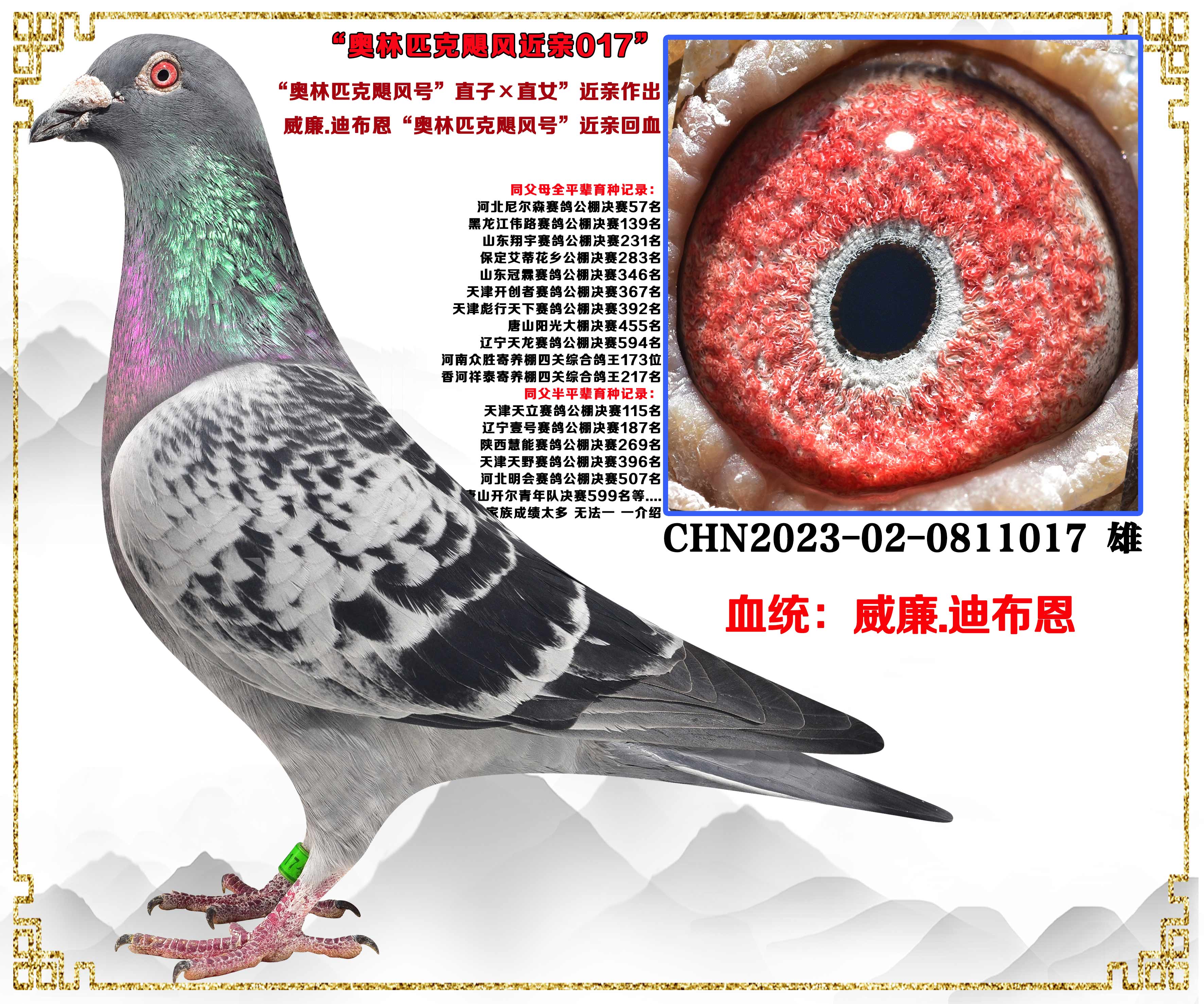 | 1626641 | 迪克.凡登布克“格里佩直子X基特爾外孫女”好紅號(hào)多重近親 | ¥1000元 | 1次 |