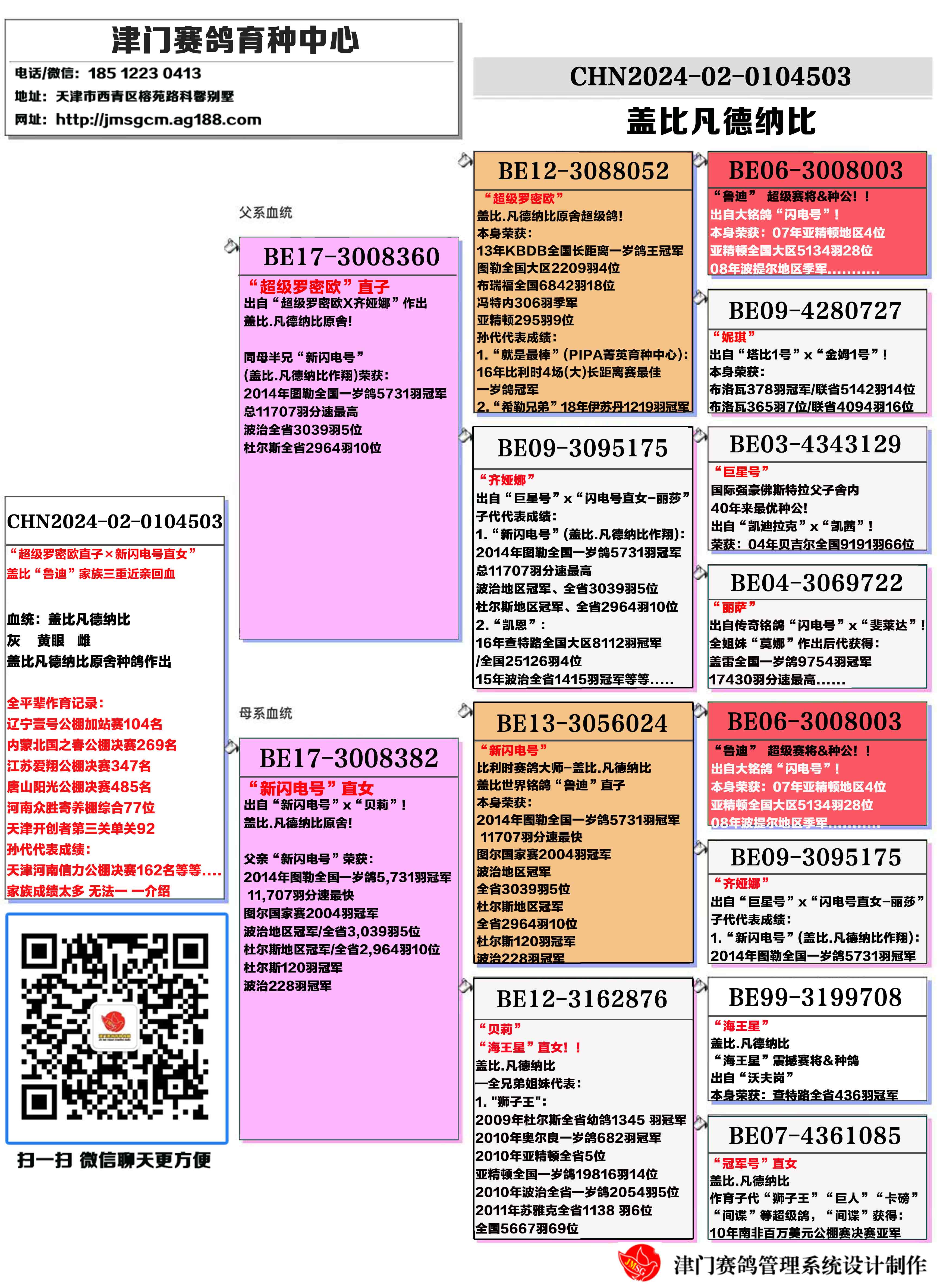 | 1626641 | 迪克.凡登布克“格里佩直子X(jué)基特爾外孫女”好紅號(hào)多重近親 | ¥1000元 | 1次 |