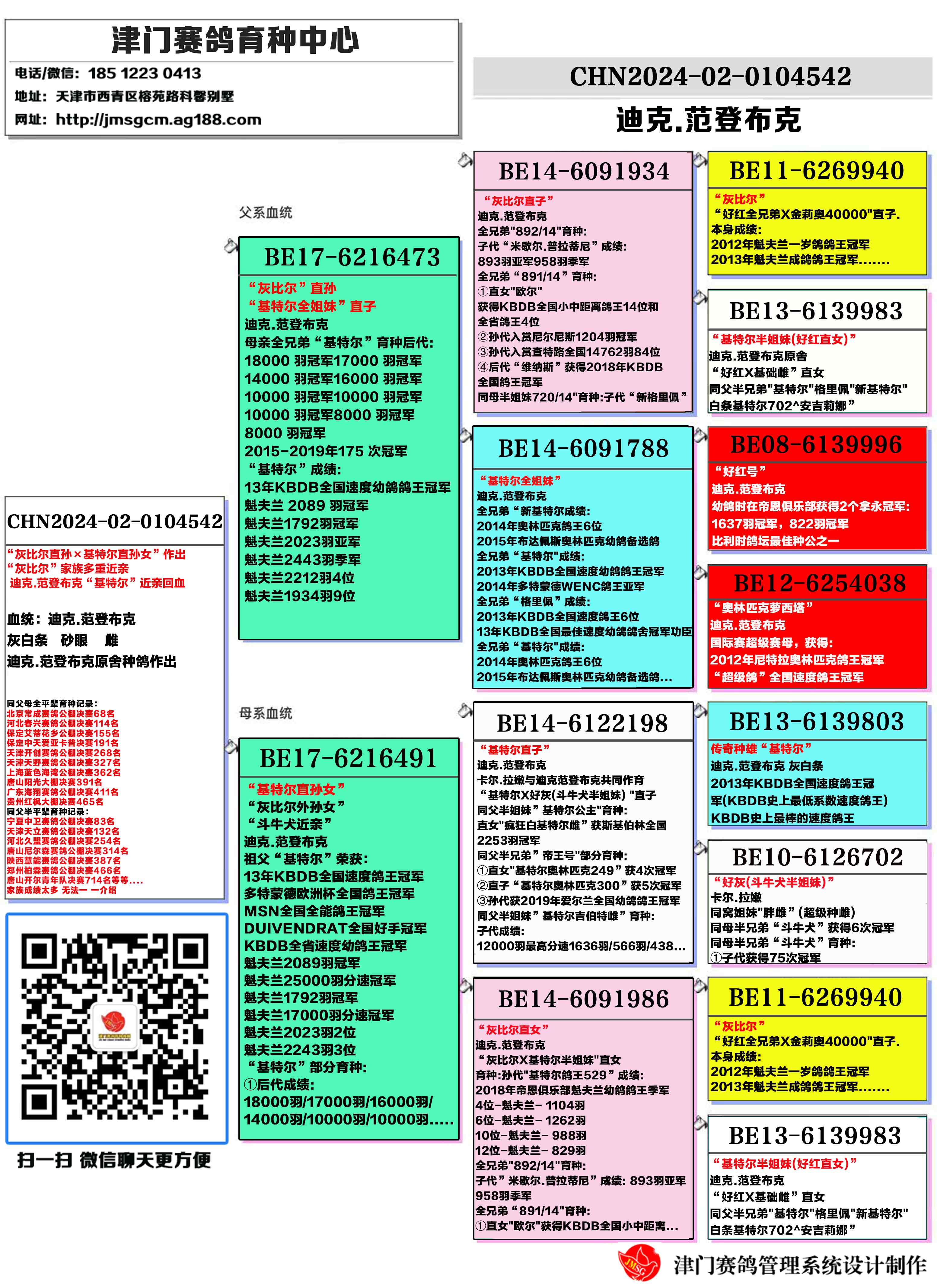 | 1626641 | 迪克.凡登布克“格里佩直子X基特爾外孫女”好紅號(hào)多重近親 | ¥1000元 | 1次 |