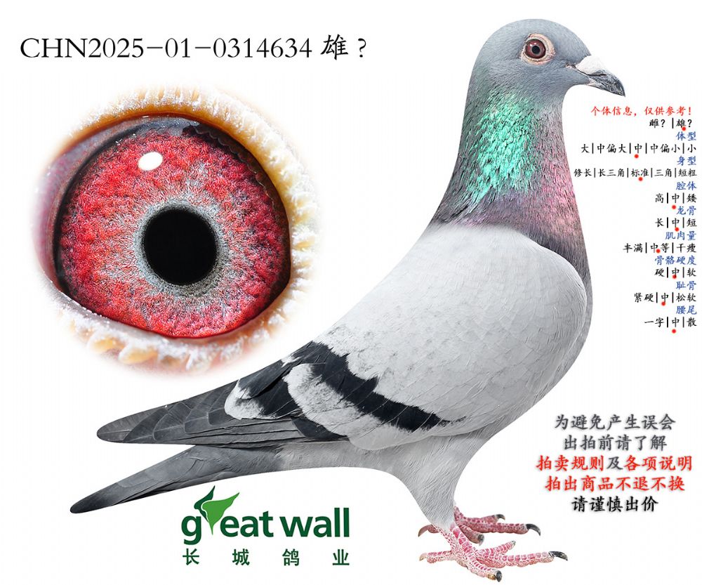 因拍賣鴿均是未做育過的種鴿或幼鴿,圖內(nèi)所標雌雄僅供參考,實際性別已實物為準。