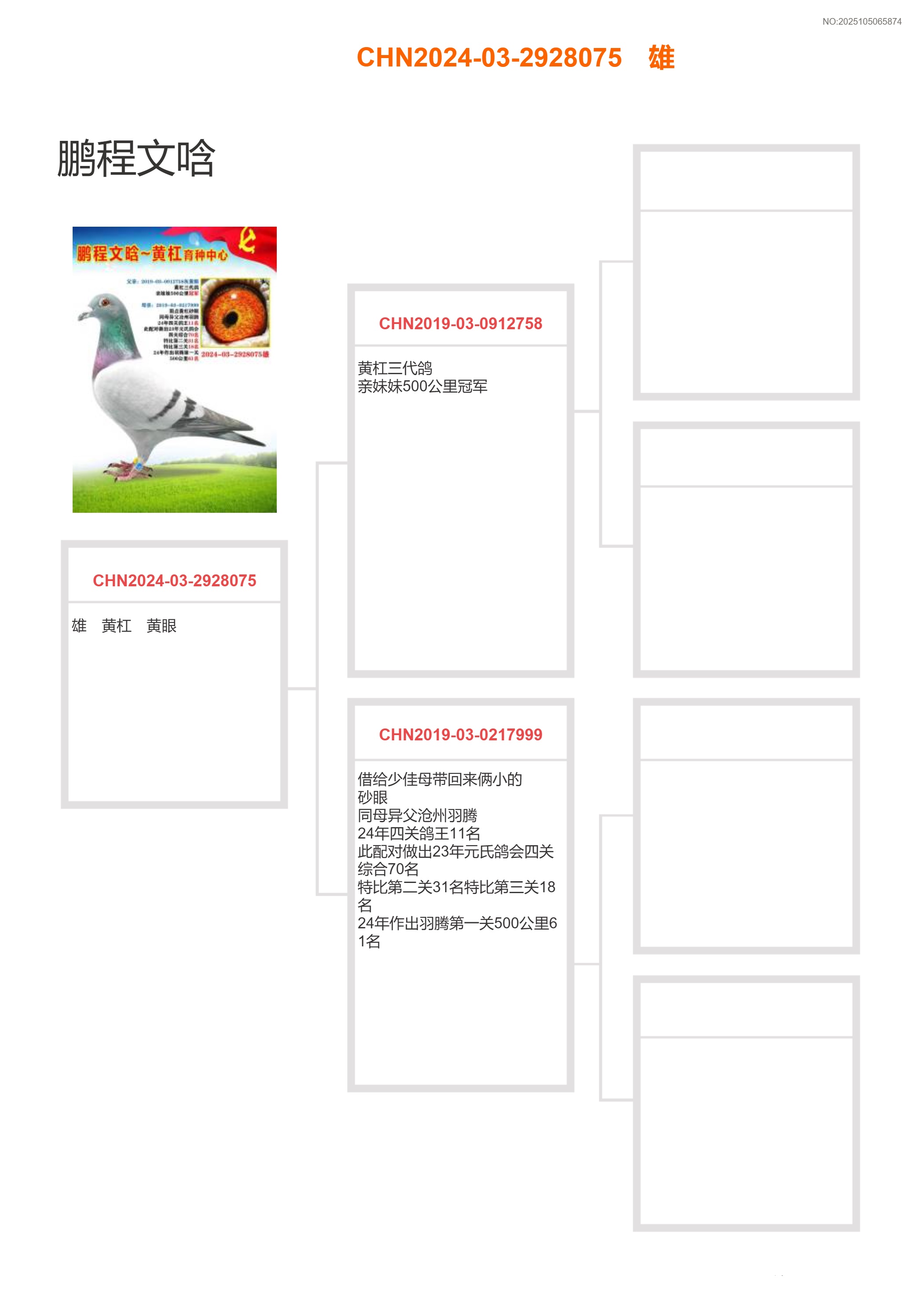 母親:2019-03-0217999雨點黃杠砂眼同母異父滄州羽騰24年四關(guān)鴿王11名此配對做出23年元氏鴿會四關(guān)綜合70名特比第二關(guān)31名特比第三關(guān)18名24年作出羽騰第一關(guān)500公里61名