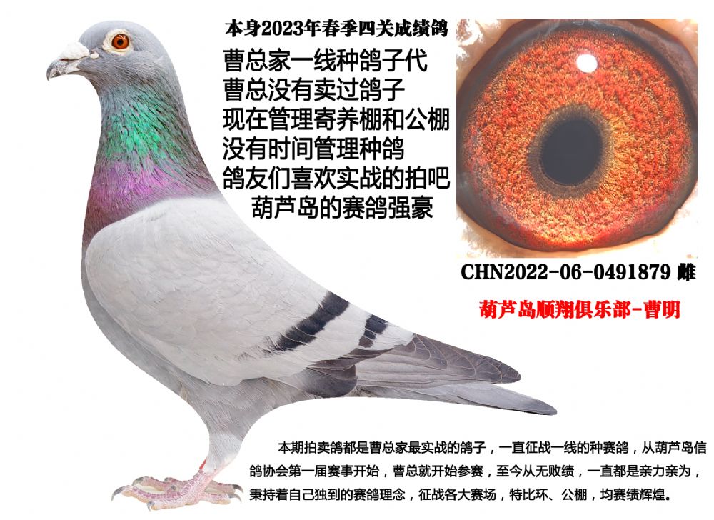 本期拍賣鴿都是曹總家的最實(shí)戰(zhàn)鴿子,一直征戰(zhàn)在一線的種賽鴿,曹總從葫蘆島市信鴿協(xié)會第一屆開始就參賽,至今從無敗績,公棚也是如魚得水,屢戰(zhàn)屢勝,曹總養(yǎng)鴿一直都是親力親為,秉持著自己獨(dú)到的賽鴿理念,征戰(zhàn)在全國各大賽場,戰(zhàn)績輝煌。