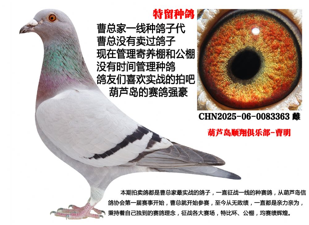 本期拍賣鴿都是曹總家的最實(shí)戰(zhàn)鴿子,一直征戰(zhàn)在一線的種賽鴿,曹總從葫蘆島市信鴿協(xié)會(huì)第一屆開(kāi)始就參賽,至今從無(wú)敗績(jī),公棚也是如魚(yú)得水,屢戰(zhàn)屢勝,曹總養(yǎng)鴿一直都是親力親為,秉持著自己獨(dú)到的賽鴿理念,征戰(zhàn)在全國(guó)各大賽場(chǎng),戰(zhàn)績(jī)輝煌。
