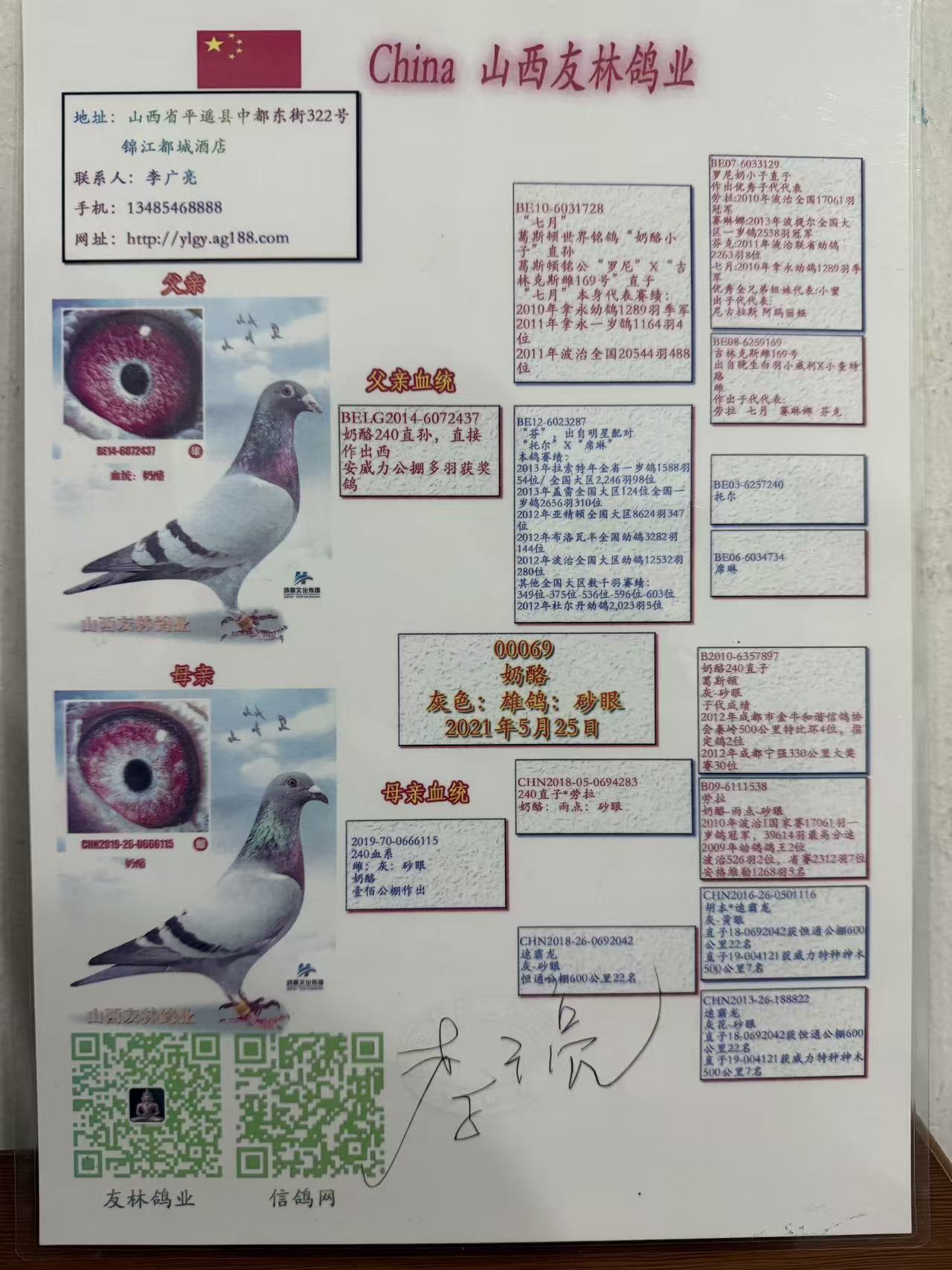 注明:5年以上的老鴿子更換環(huán)境有可能造成不能作育,請你謹(jǐn)慎出價