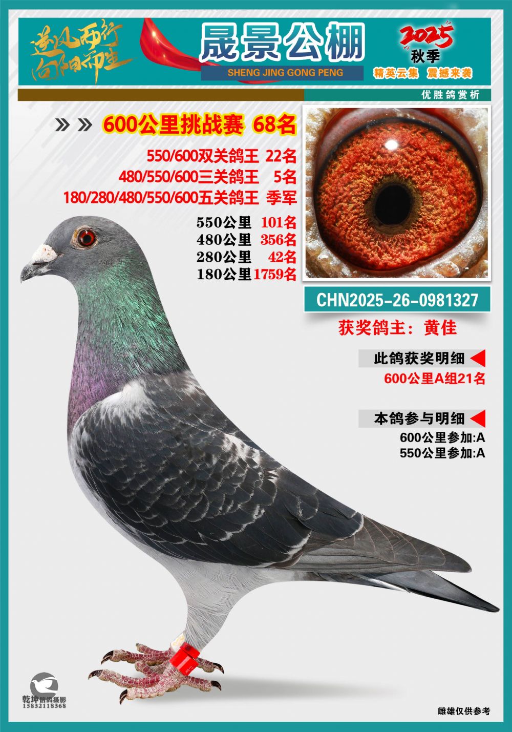 晟景挑戰(zhàn)賽68名(鴿王雙關(guān)22名三關(guān)5名五關(guān)季軍)