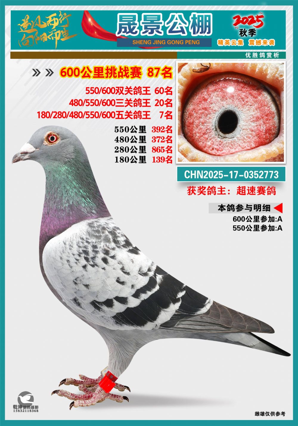 晟景挑戰(zhàn)賽冠軍(鴿王雙關(guān)9名三關(guān)10名五關(guān)11名) |