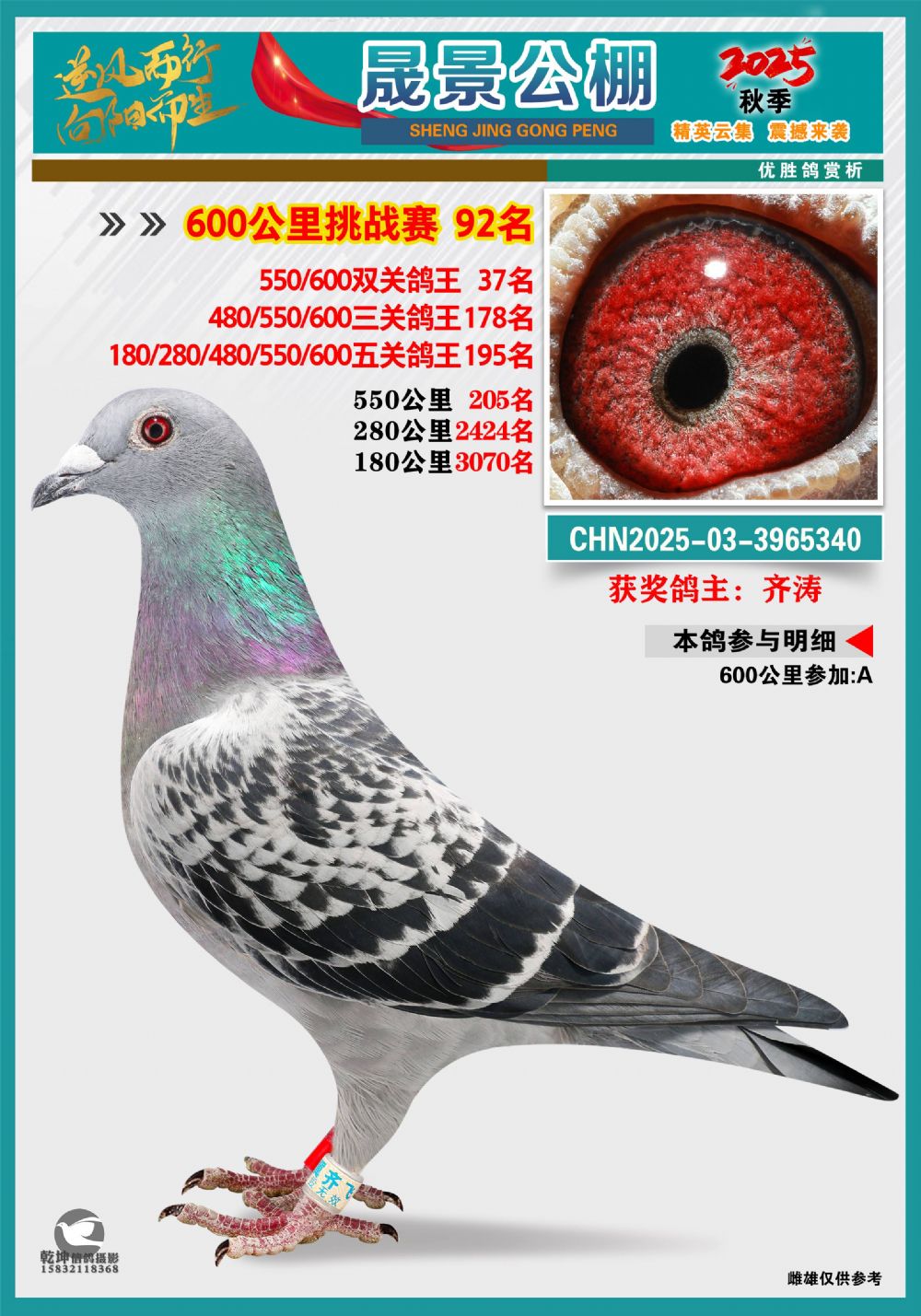 晟景挑戰(zhàn)賽冠軍(鴿王雙關9名三關10名五關11名) |