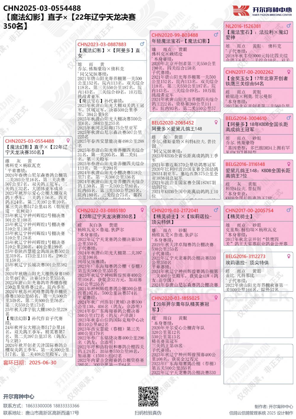 | 1628673 | 開爾春棚決賽6名,精英賽季軍×24年唐山陽光四關(guān)鴿王50名 | ¥3000元 | 0次 |