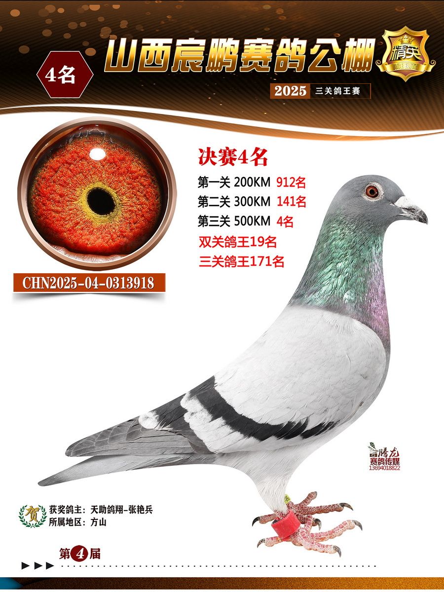 | 1628898 | 山西宸鵬決賽12名(三關鴿王冠軍)(雙關鴿王6名) | ¥500元 | 2次 |