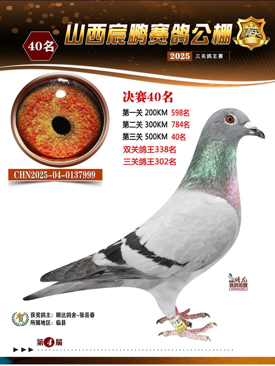 | 1628898 | 山西宸鵬決賽12名(三關(guān)鴿王冠軍)(雙關(guān)鴿王6名) | ¥500元 | 2次 |