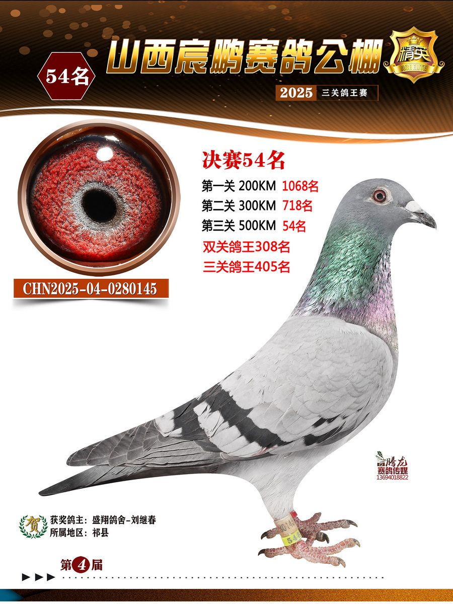 | 1628898 | 山西宸鵬決賽12名(三關(guān)鴿王冠軍)(雙關(guān)鴿王6名) | ¥500元 | 2次 |