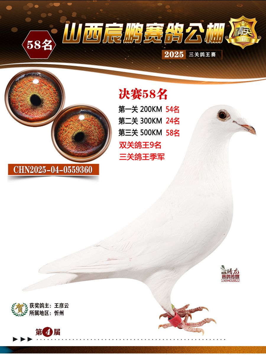 山西宸鵬決賽58名(三關(guān)鴿王季軍)(雙關(guān)鴿王9名)